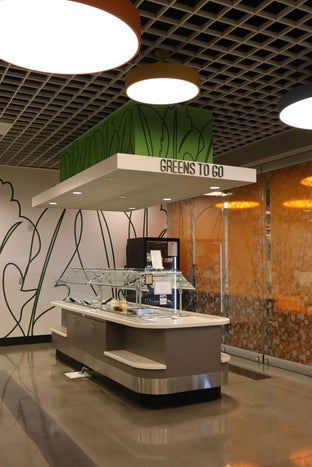 Greens to Go focuses on fresh and healthy foods. The menu features classics such as Caesar and garden salads, along with artisan options. Customers can mix it up and choose to Create Their Own. Salads can be made as wraps and paired with savory items including soups, chips and a drink.
